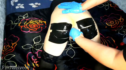 HD 05:30Он заклеил попку скотчем и сильно трахнул мою анальную дырочку рукой и бутылкой